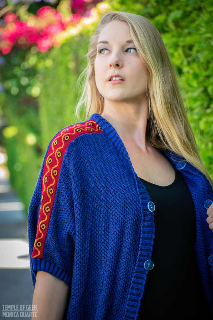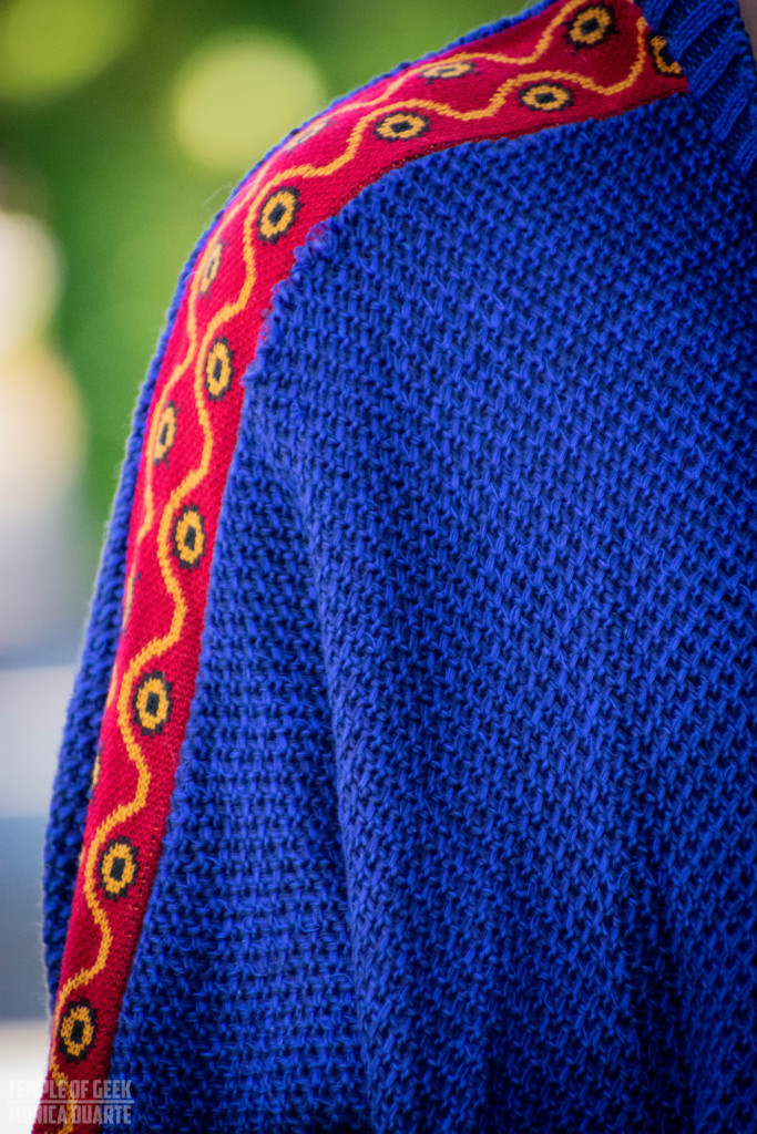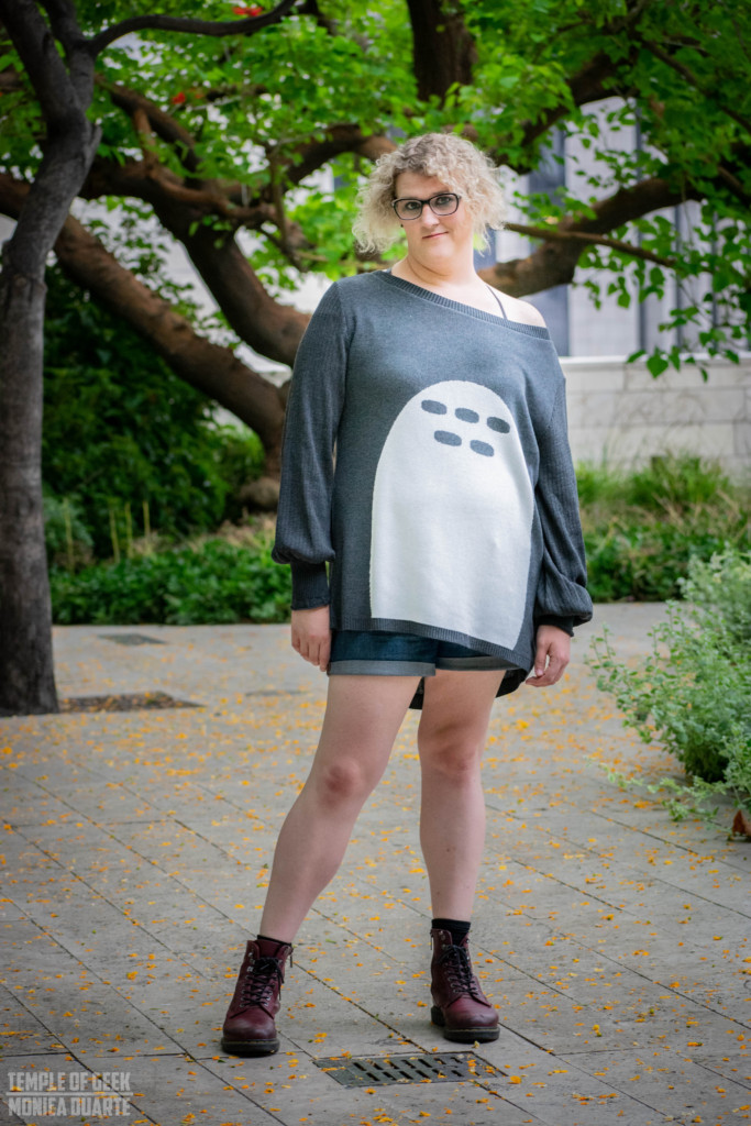 This Princess Mononoke inspired dolman is probably my favorite of the three pieces we got to try out. I think it is the detachable faux fur that does it for me. Having the option to keep the fur on and being able to remove it gives you so many options when it comes to styling. And it feels like owning two different sweaters. It’s amazing how something so simple can make such a difference in the look of a sweater.
