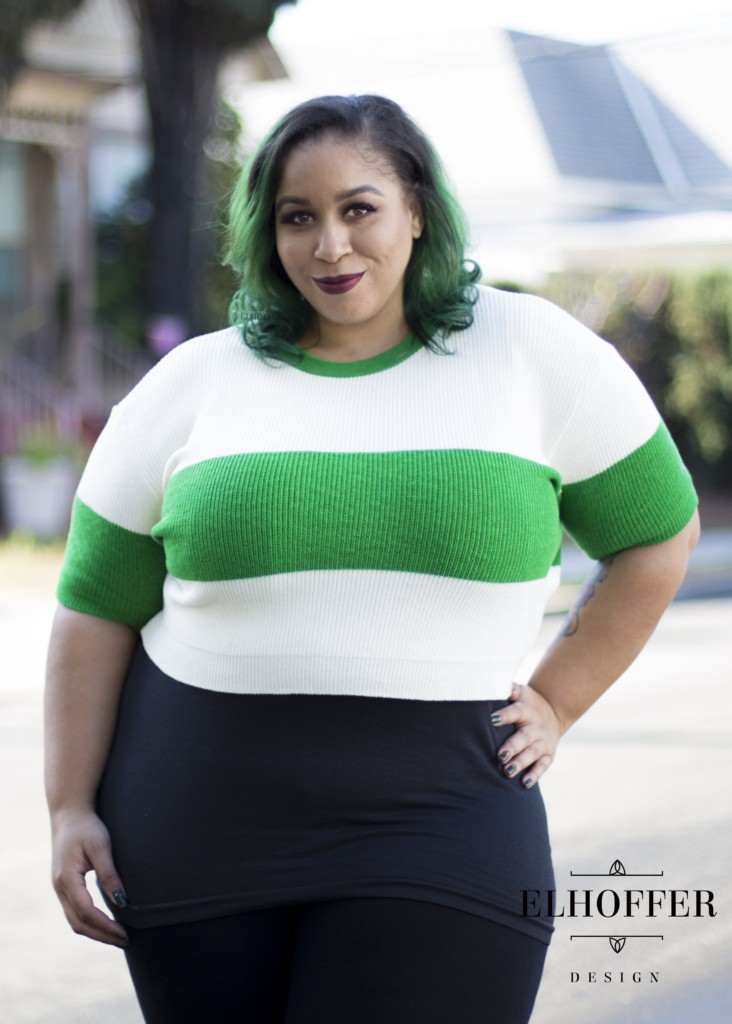 The Lost Girl Cropped Sweater is inspired by the Movie Spirited Away. It comes in a very stretchy knit fabric. Much like many of the Elhoffer collections we have looked at, the design aligns with modern styles and trends, and it is subtle in it’s design and appearance. It is a nod to our favorite characters without being overwhelmingly geeky. It is soft and warm. And very easy to pair with a lot of what you may already own in your closet. The high quality materials used make it easy to pair with dresses, skirts and even a pair of jeans. It looks great on different body types. If you are someone who isn’t super comfortable showing a lot of skin in your mid section, i recommend something high waisted to wear with it. We loved how our model, Alice, styled it with this little black dress.