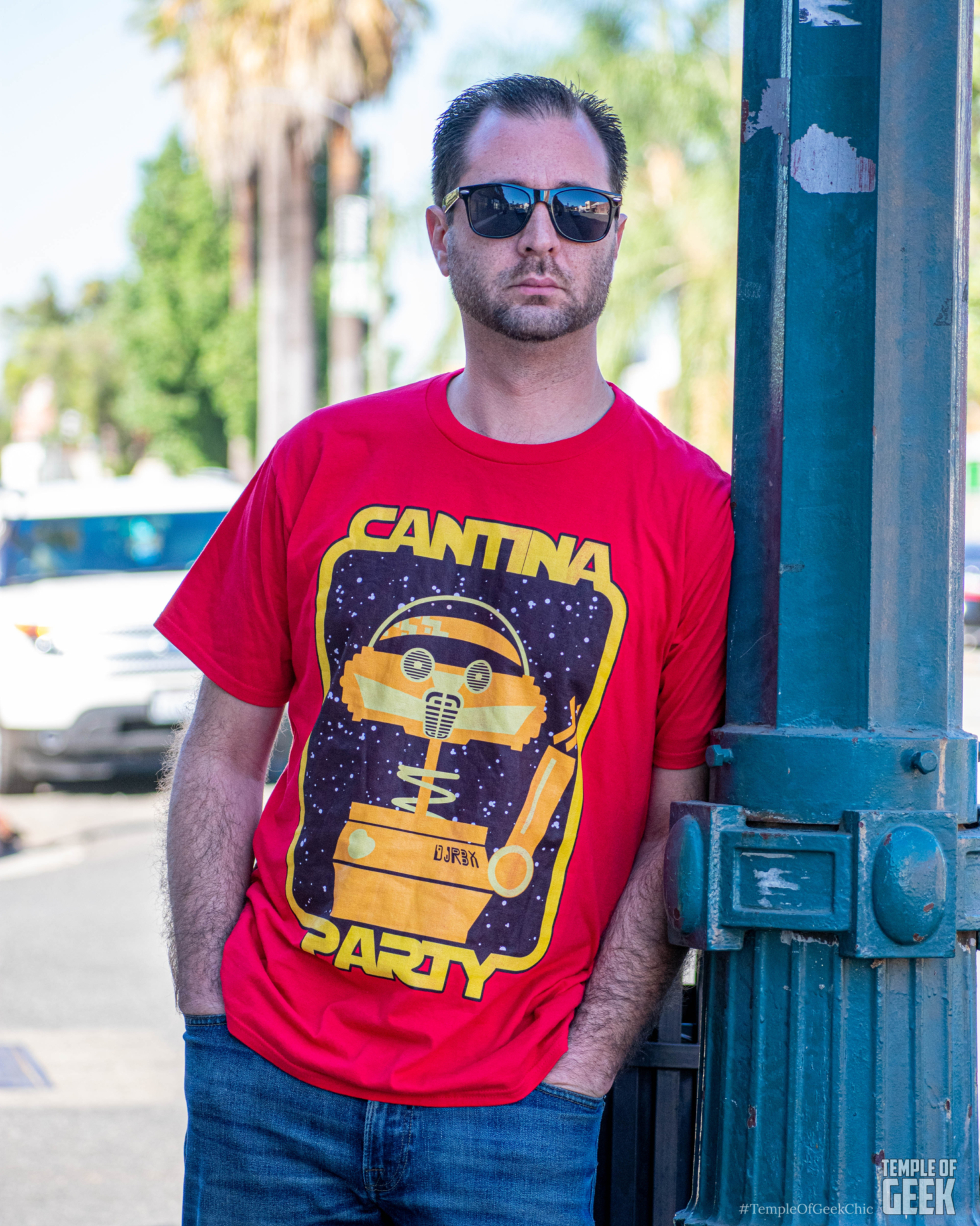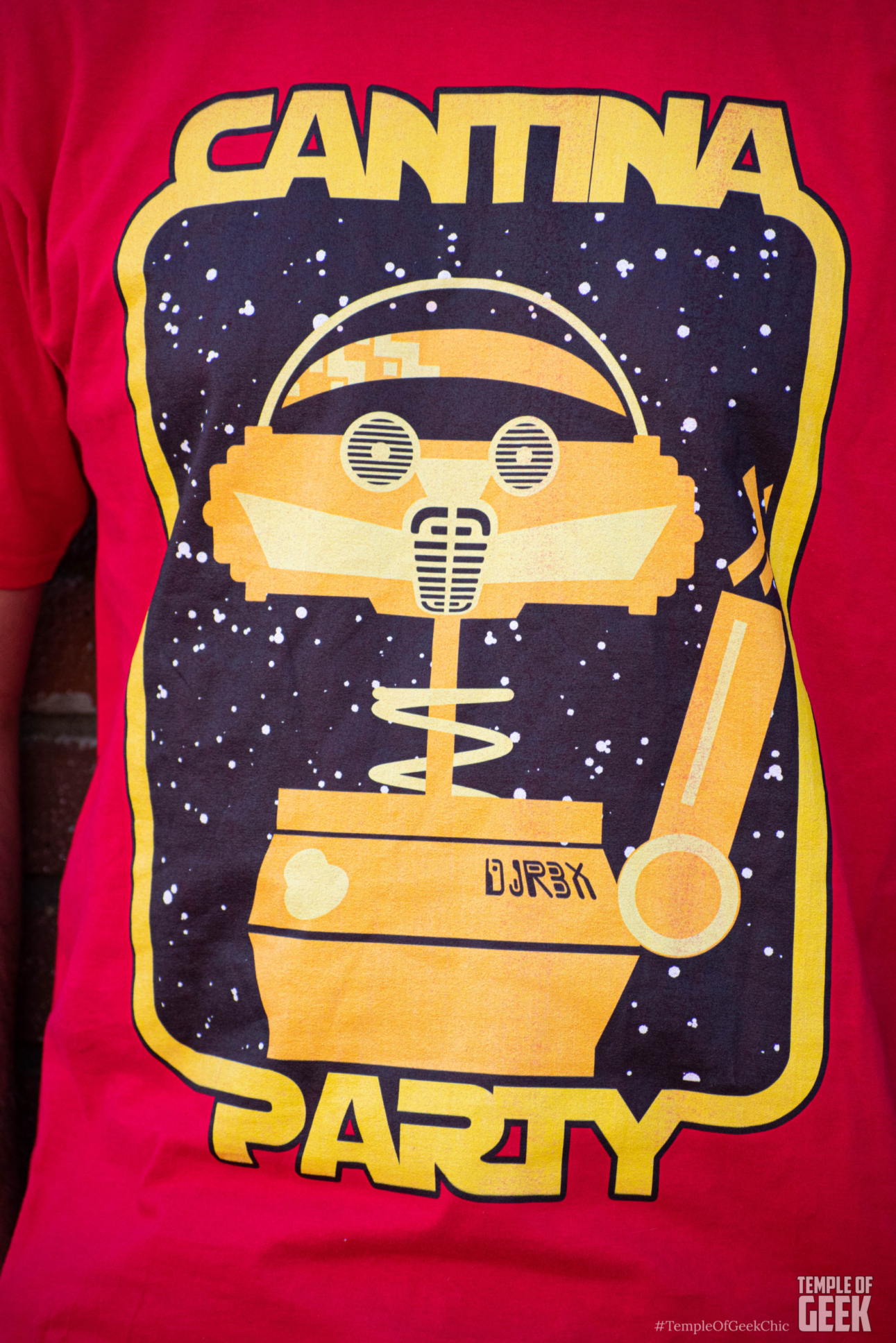 ShimmerPop’s Cantina Party shirt fits this description and then some, featuring beat-dropping droid (and former Star Tours pilot) DJ R3X, one of the main attractions of Oga’s Cantina. Doc In The Box channeled some serious Star Wars vibes while wearing the Large men’s fit version of this shirt.