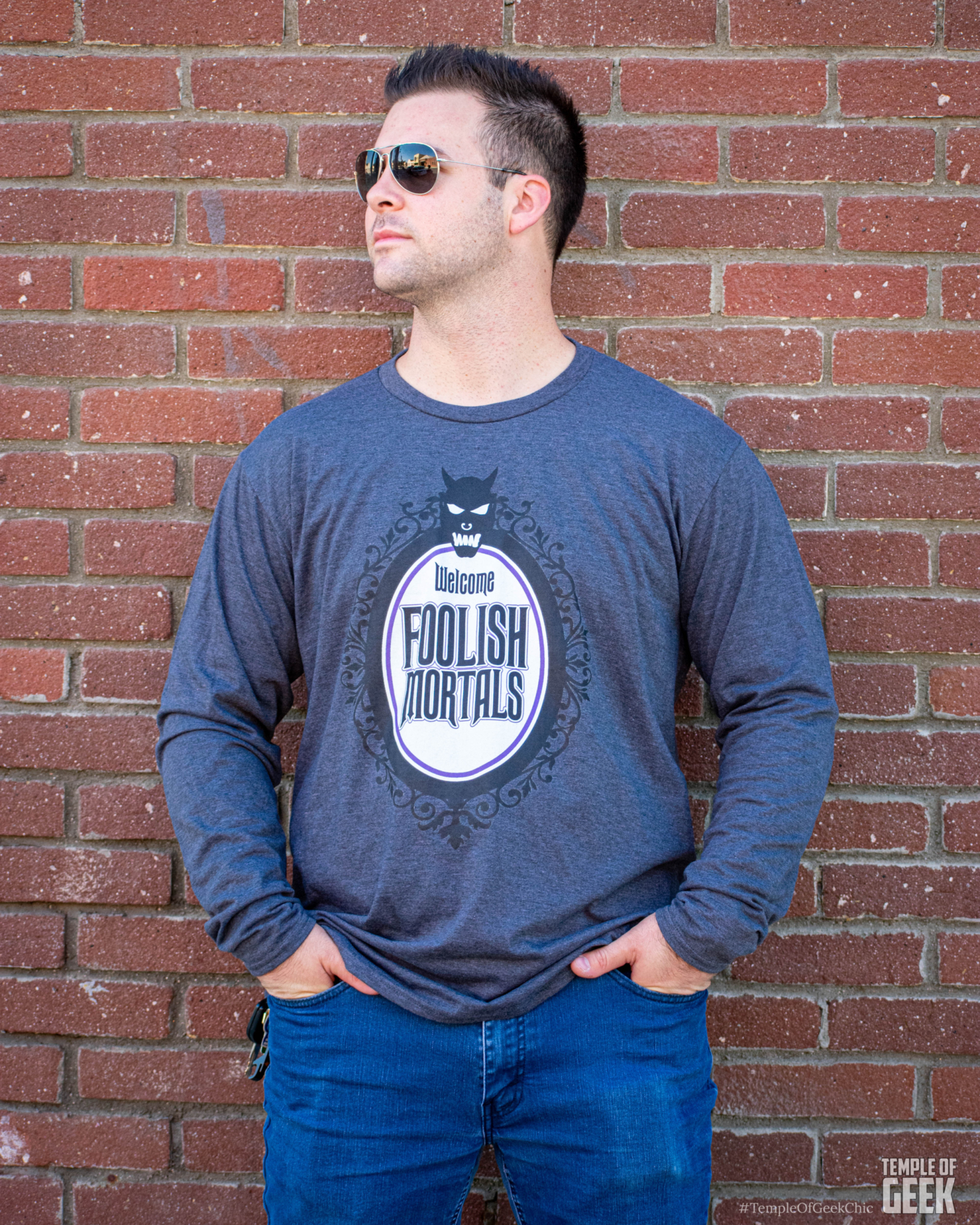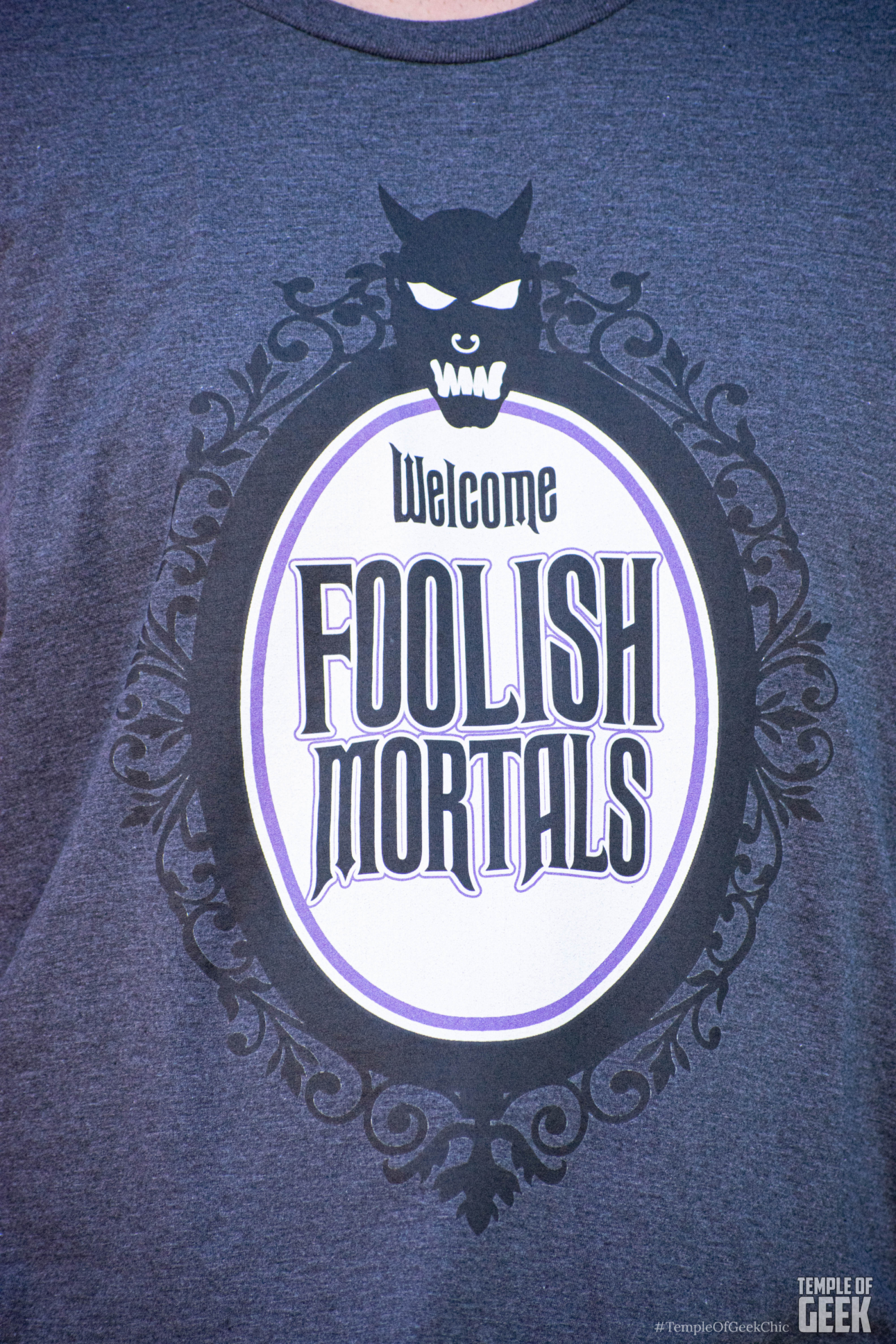 What we love about it: The tee is a fresh, unfussy take on the signature Haunted Mansion aesthetic that fans of the classic attraction love. The spooky black and purple against the dark gray really pops. Foolish Mortals will want to rock this tee to their next swinging wake.