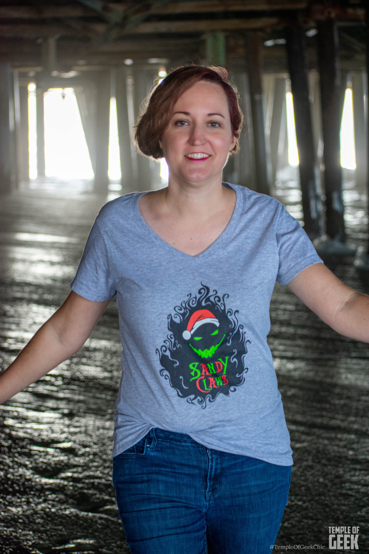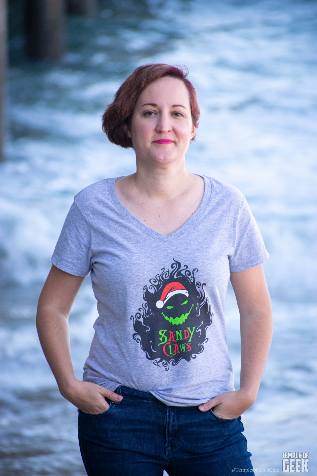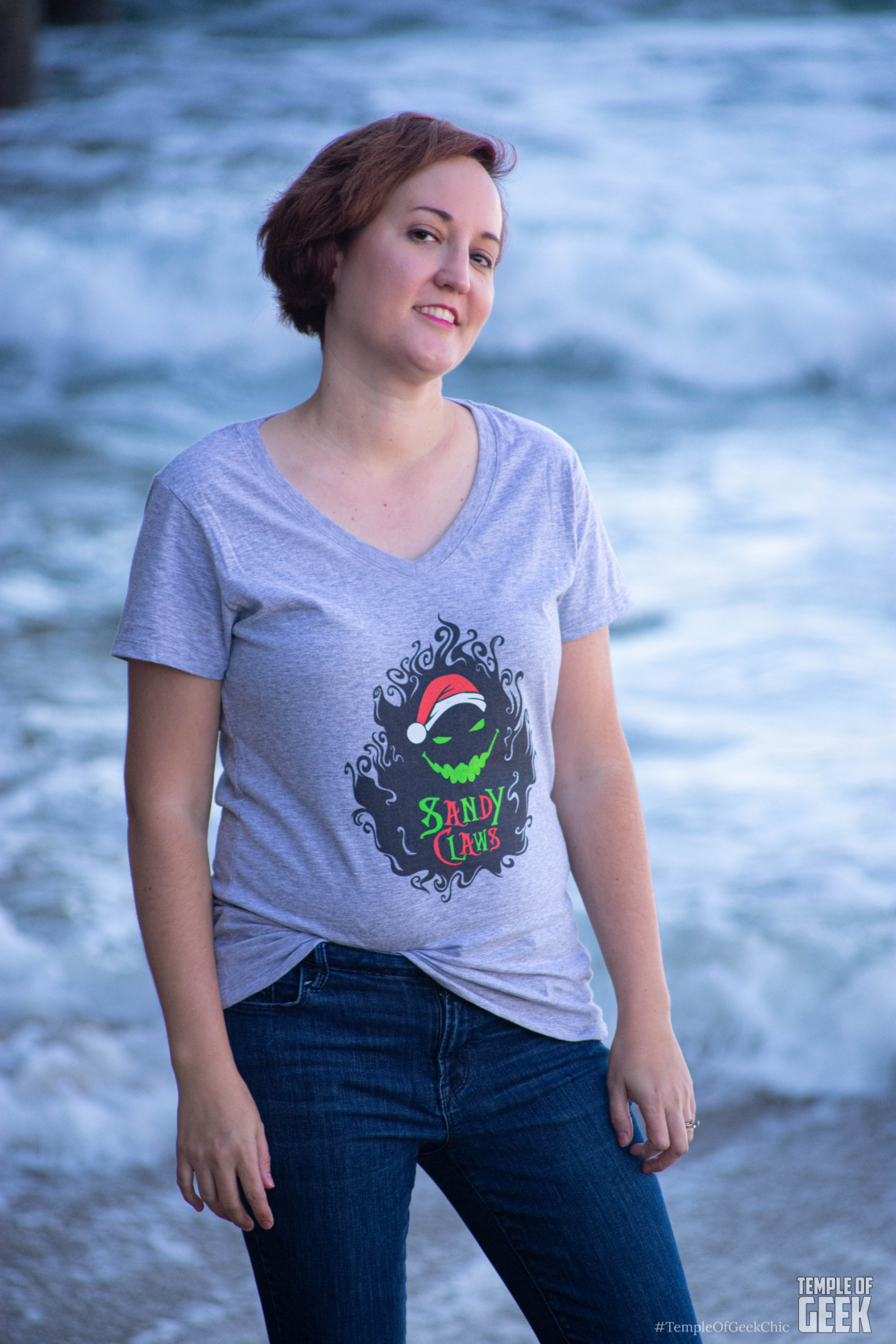 We took this Nightmare Before Christmas-themed women’s T-shirt to the sandy shore of Santa Monica, a strangely fitting setting for Sandy Claws.