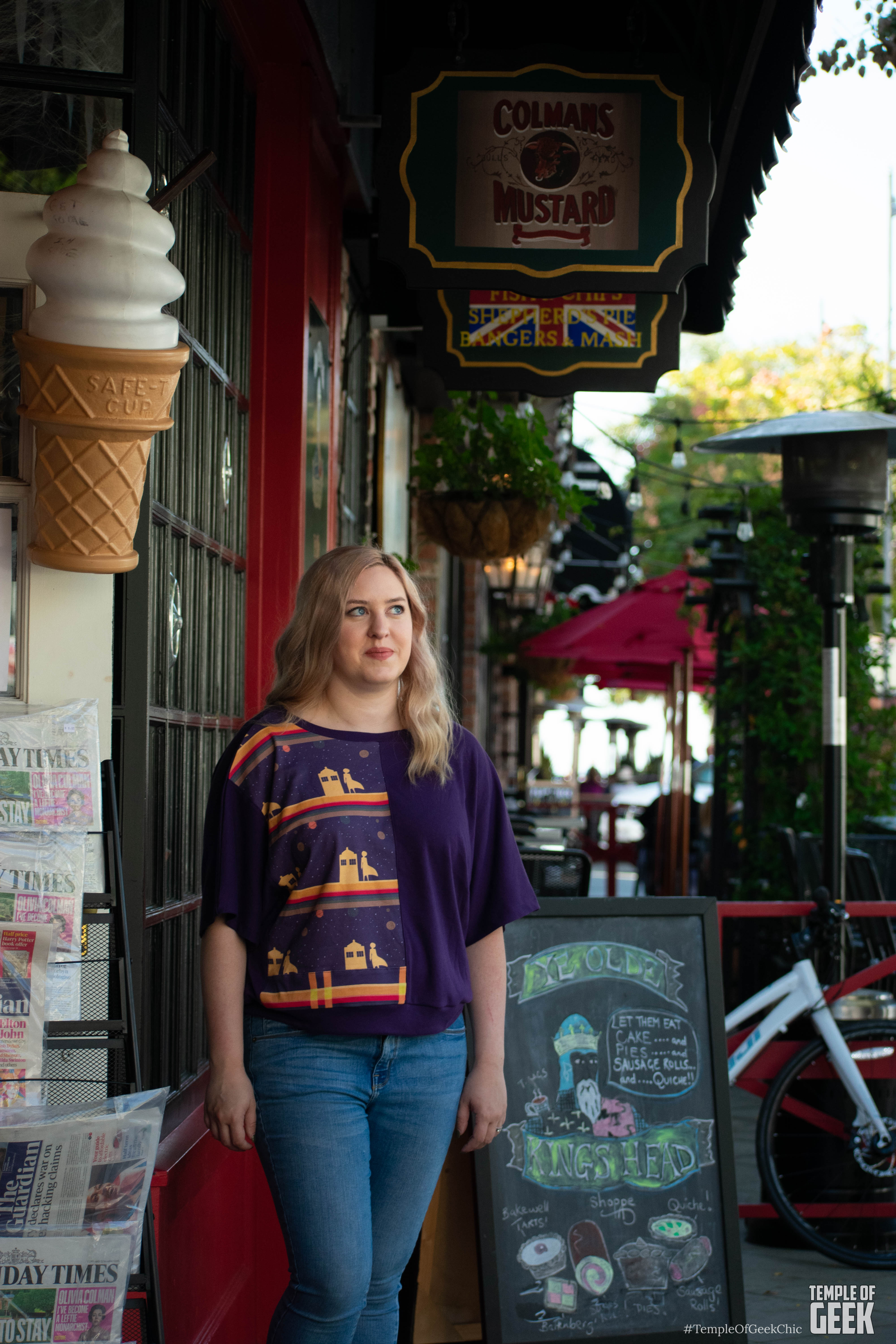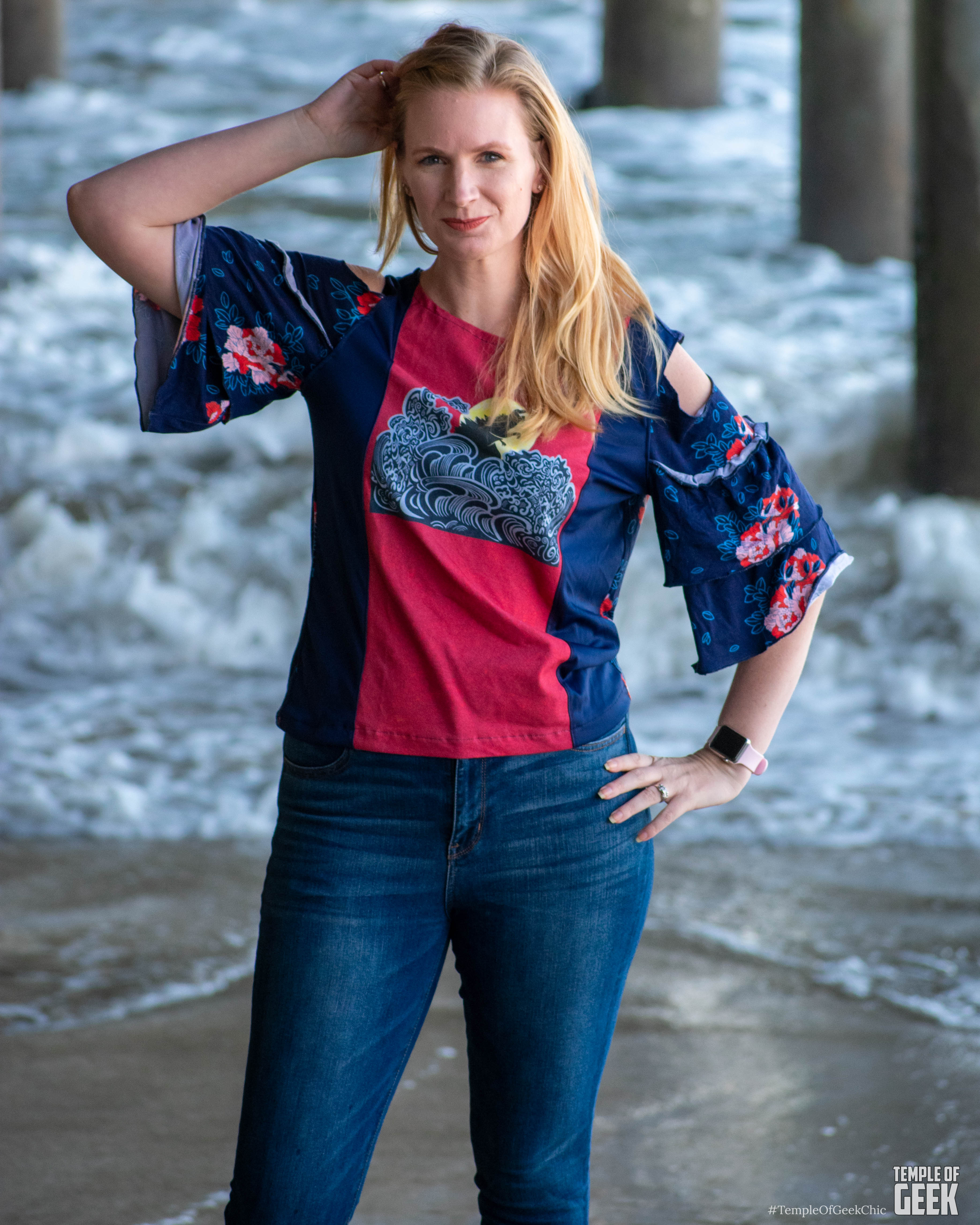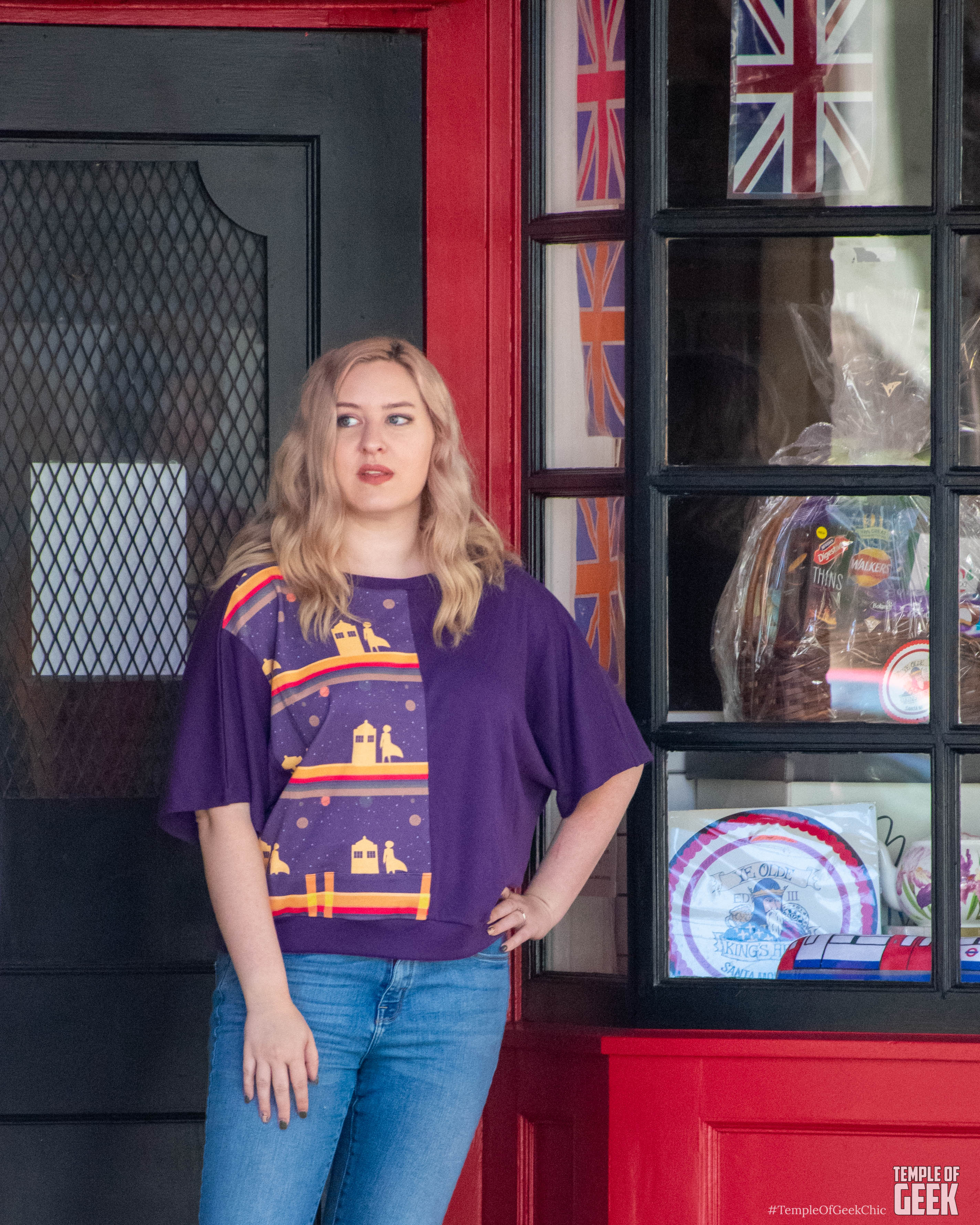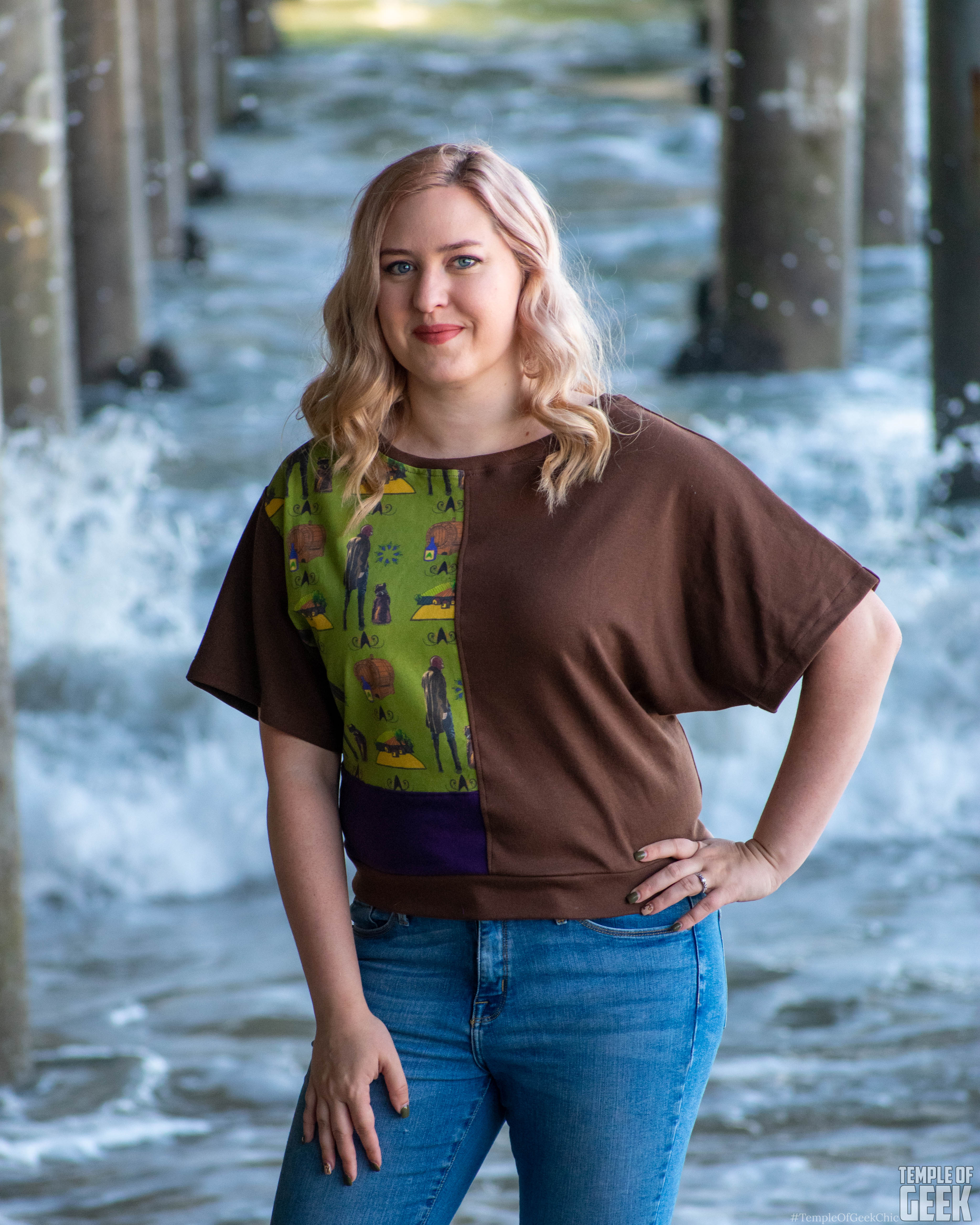 Both Erin and Christy modeled this Doctor Who-inspired top, which illustrates its versatility. It could be sized down for a dressy-casual look or sized up as a slouchy workout top over yoga pants.