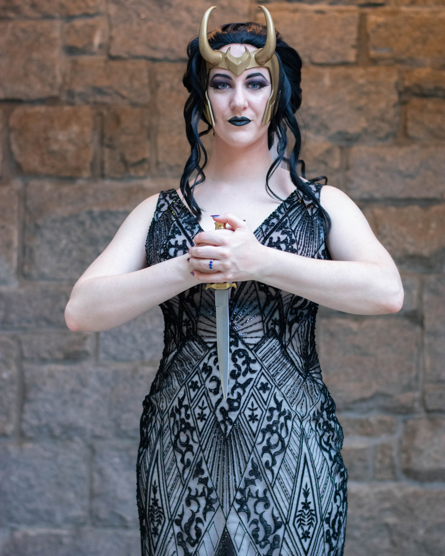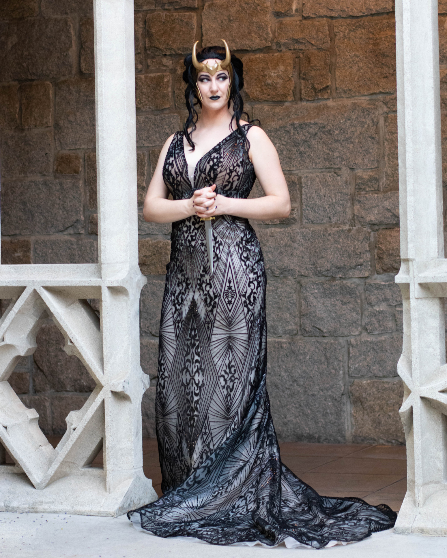 Bridal store owner Amanda Hunt has a knack for knowing what geek brides want. Together with her friend, cosplayer Damsel Cosplay, they put together a breathtaking Bridal look that was inspired The God of Mischief. The look is bold, daring and non-traditional. A black wedding gown isn’t something we see walking down the aisle too often. But this gown by Maggie Sottero Designs is burdened with glorious purpose.