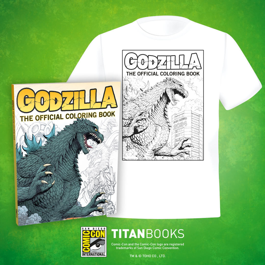 - Godzilla: The Official Coloring Book with FREE T-Shirt! – Every copy of this popular coloring book comes with a free, limited edition t-shirt featuring your favorite Kaiju in front of a San Diego 2024 building.