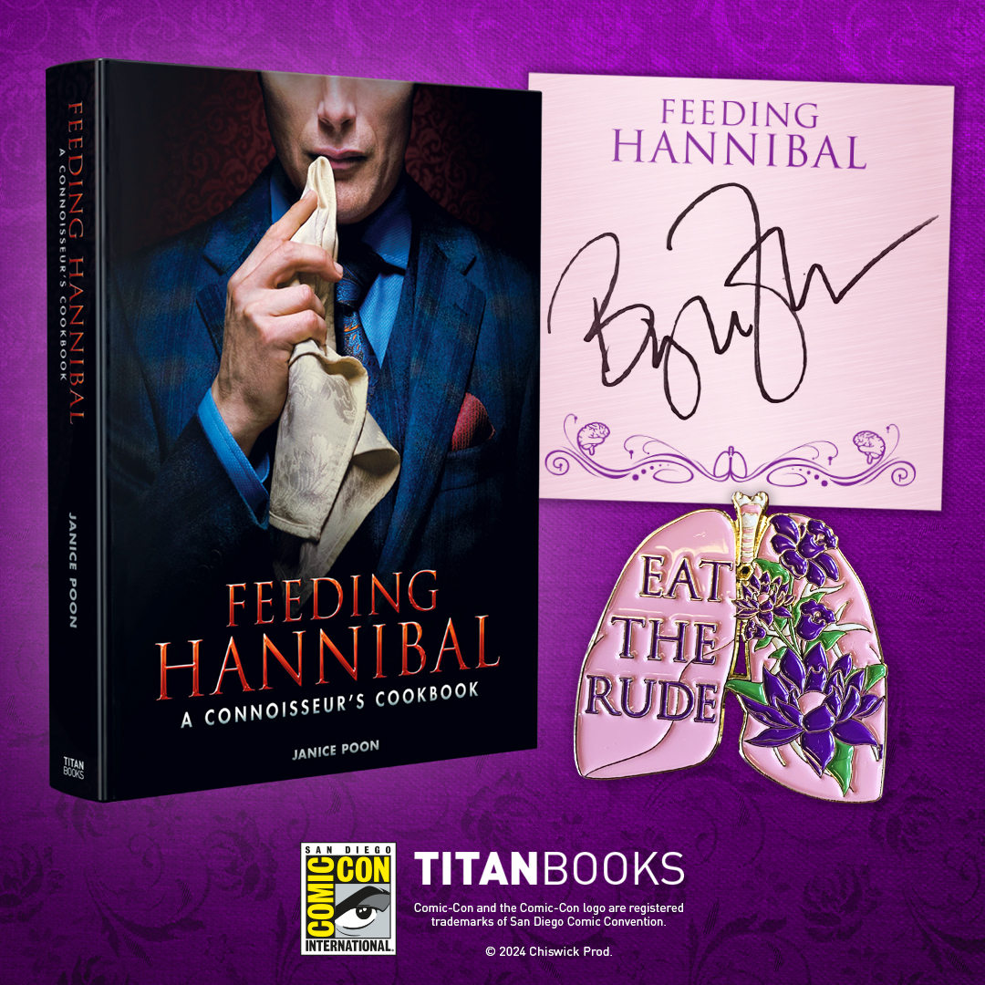 - Signed Copies of Feeding Hannibal: A Connoisseur’s Cookbook with Limited Edition “Eat The Rude” Lungs Pin – Featuring brand-new bookplates signed by showrunner Bryan Fuller and food designer Janice Poon, each copy comes with an exclusive pin.