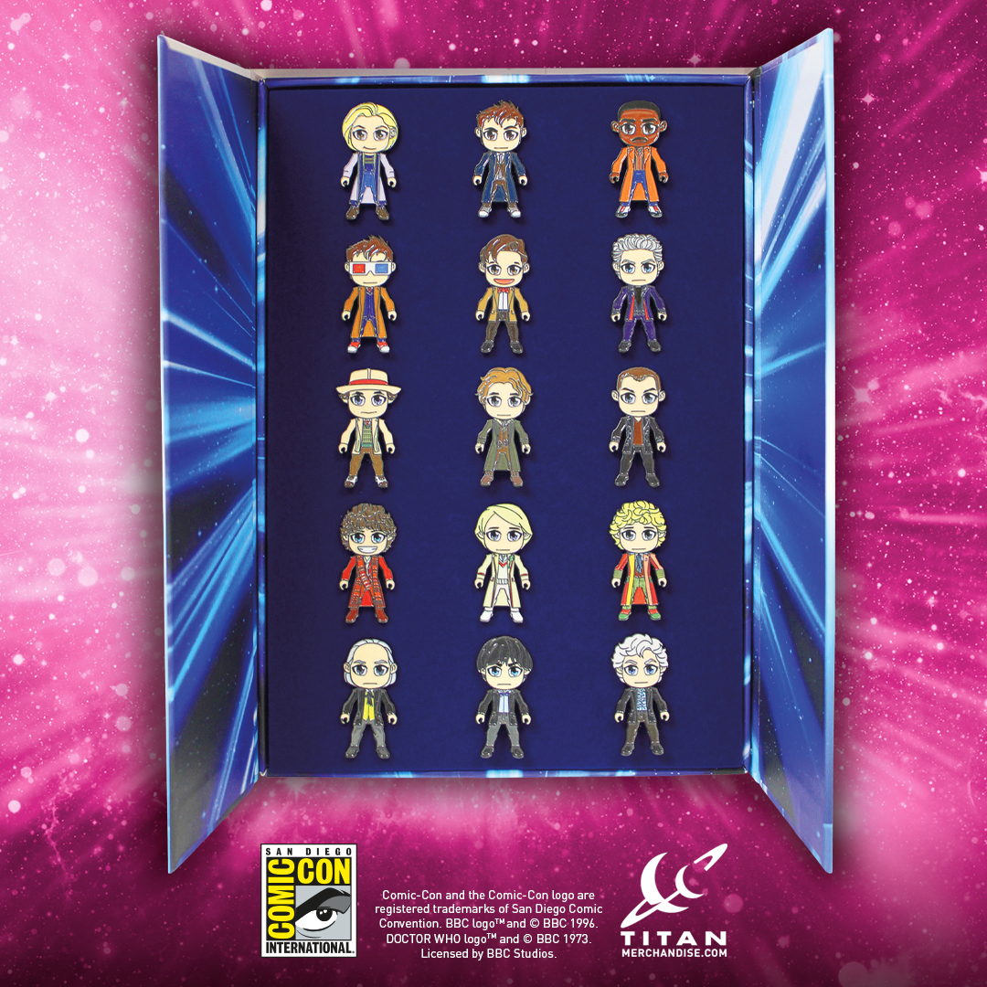 - Doctor Who: Fifteen Piece Kawaii All Doctors Enamel Pin Collection – An extremely limited edition collection of Kawaii-style pins featuring all the Doctors.