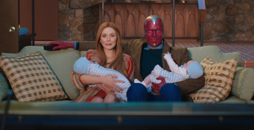 Elizabeth Olsen as Wanda Maximoff and Paul Bettany as Vision in Marvel Studios’ WANDAVISION exclusively on Disney+. Photo courtesy of Marvel Studios. ©Marvel Studios 2021. All Rights Reserved.
