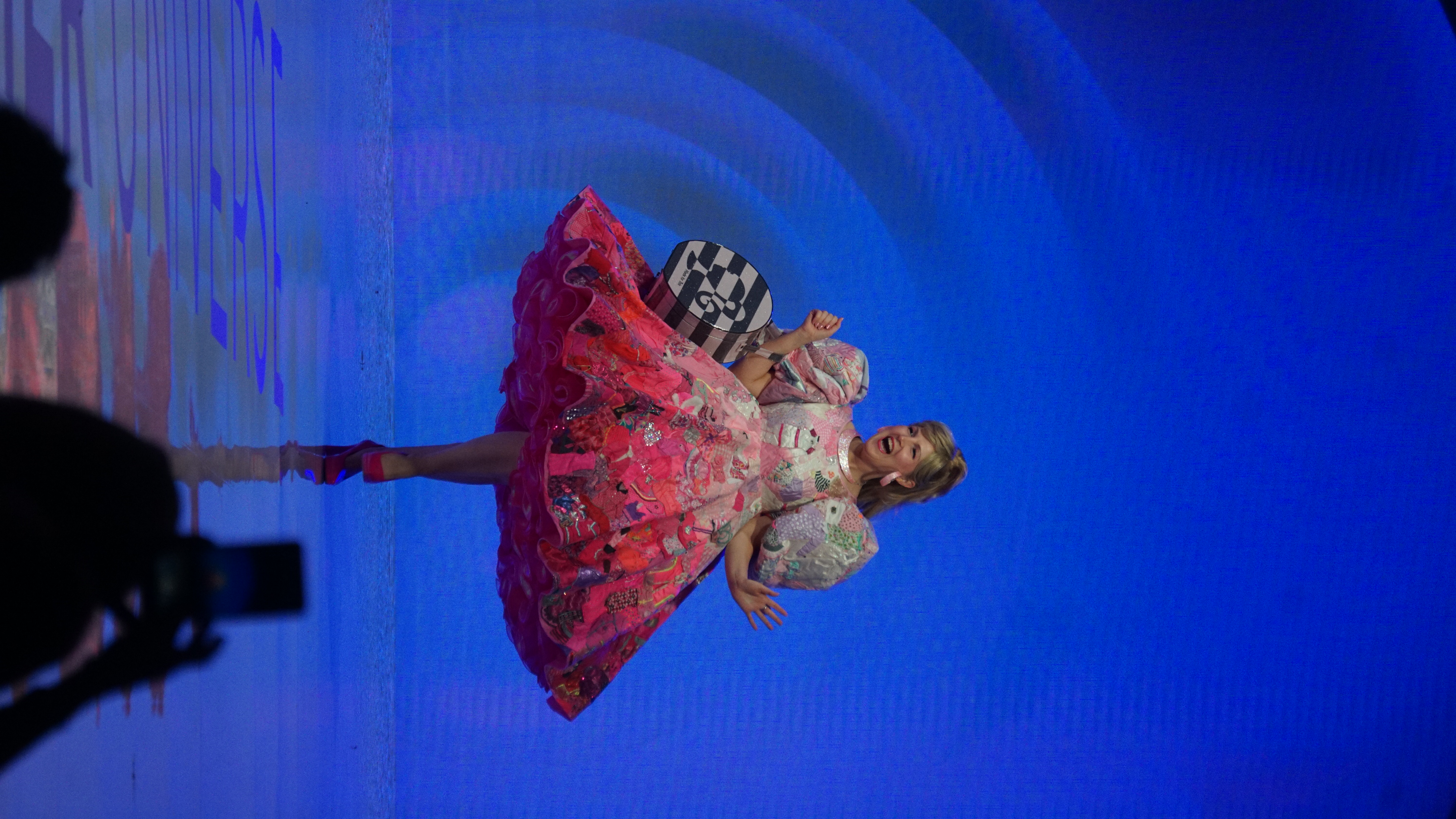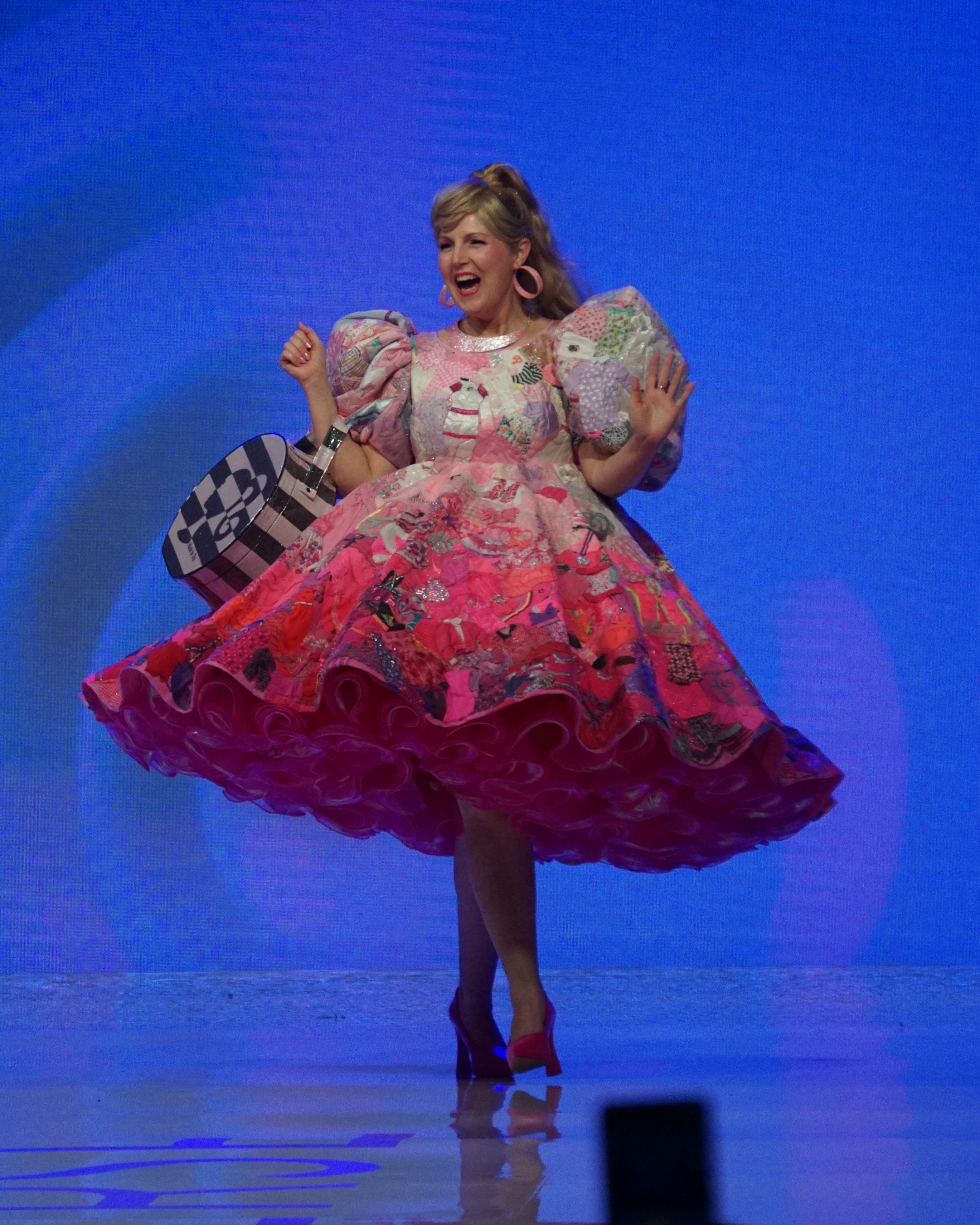 Winner of the 2024 Her Universe Fashion Show, Wes Jenkins, created the winning design using over 600 pieces of second-hand Barbie clothes.