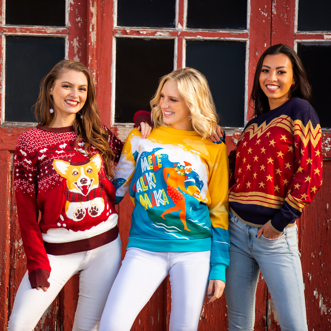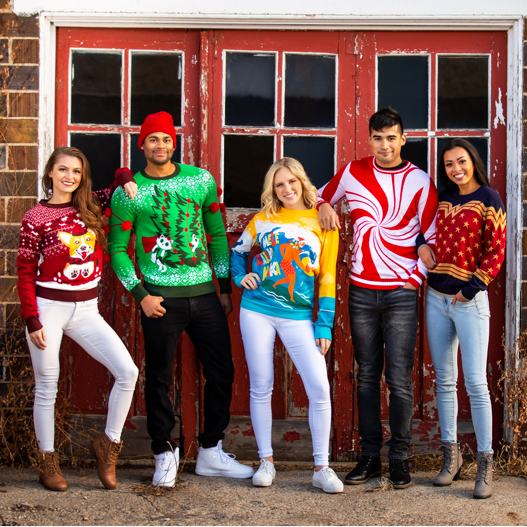 Fun.Com is one of our favorite places for geek fashion. They are one of the few big companies that stay true to their geeky roots. And it’s clear by the merchandise they carry that they know what fans like. Recently they released some really funny and geeky Ugly Christmas Sweaters inspired by the WWE, Wonder Woman, Jay, and Silent Bob. And although this year there won’t be parties to wear your Ugly Christmas Sweater at, we can all agree that holiday fun and cheer is always a plus!