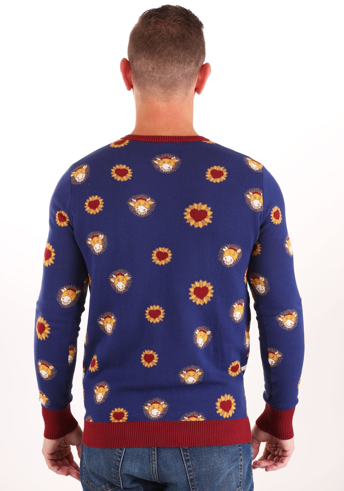 This adult sweater is officially licensed from The Jay and Silent Bob Reboot. The design on the front features the main man himself in the center, with plenty of rays of light surrounding him. It also has a repeating pattern of hearts and, heck, we even threw in Mooby the Golden Calf in for good measure. Available here.